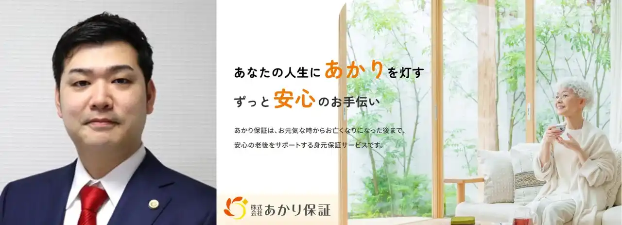 入院時・施設入所時の身元保証人の引受、葬儀手続など、『身元保証』事務を、近年では家族が担うことができなくなってきている社会背景において、家族の代理で身元保証事務を行う身元保証業者が激増。無法地帯な身元保証業界を変えたいと思い、『あかり保証』を創業。弁護士等の信頼のある専門家集団が、国が定めるガイドラインを遵守して、高齢者に安心を提供します。 |