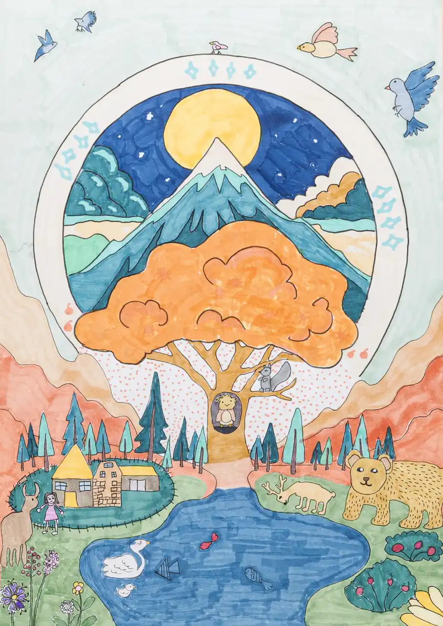 JQA 地球環境世界児童画コンテストは、子どもたちに絵を描くことを通じて環境問題について考える機会を提供することを目的に、1999 年より毎年開催しています。また、国内の美術館などで展示会を開催し、多くの人たちに子どもたちの地球環境へのメッセージ(絵)を伝えています。 |