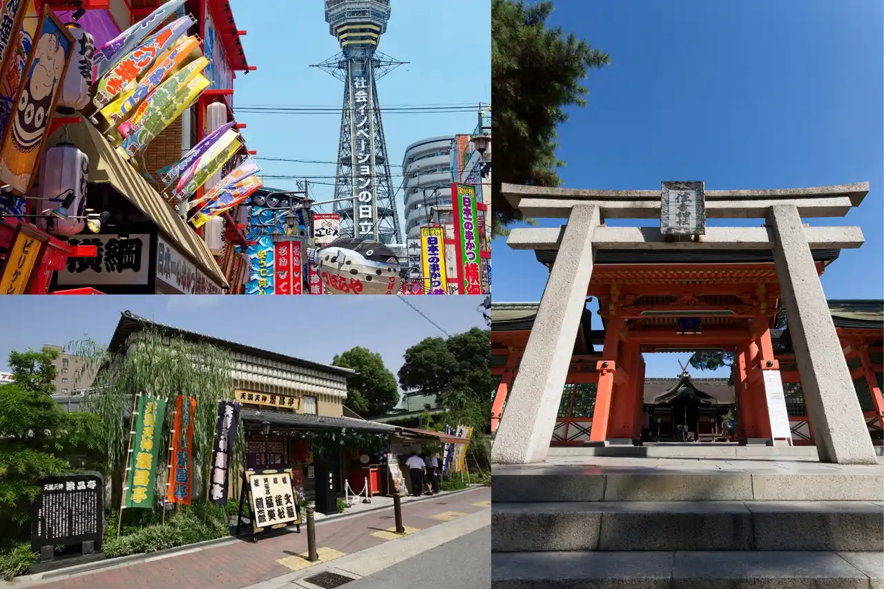 左上:新世界 左下:天満天神繁昌亭 右:住吉大社 ※写真はいずれもイメージです |
