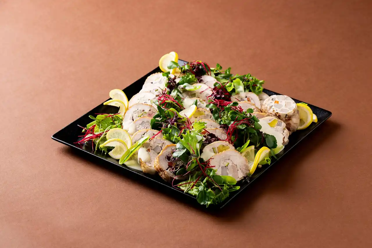阿波尾鶏と秋野菜のファルス レモンバターソース |