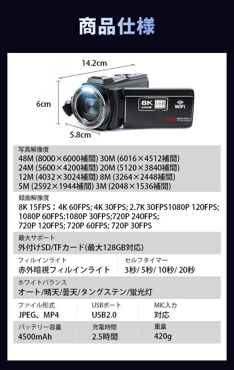 | 【新製品】機能が更にアップグレード!高画質 ビデオカメラ 8K Pro発売 | |||||||||||||||||||