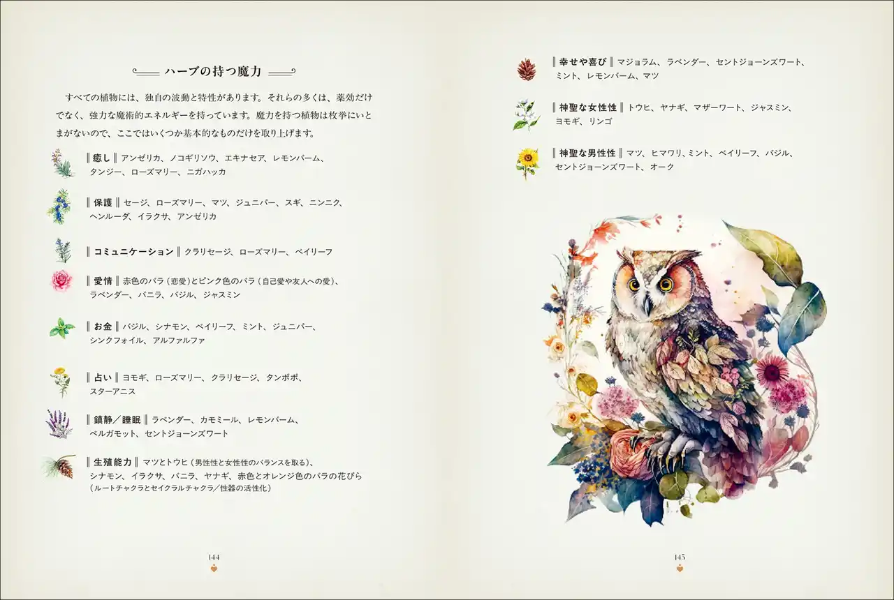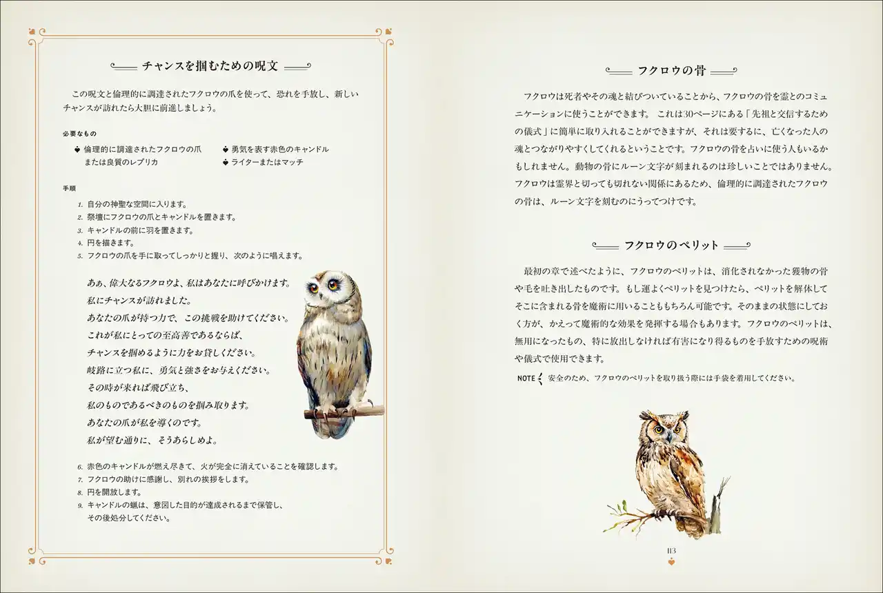 ・フクロウの神秘のパワーを借りた祈りの呪文や魔術のレシピを多数掲載 |