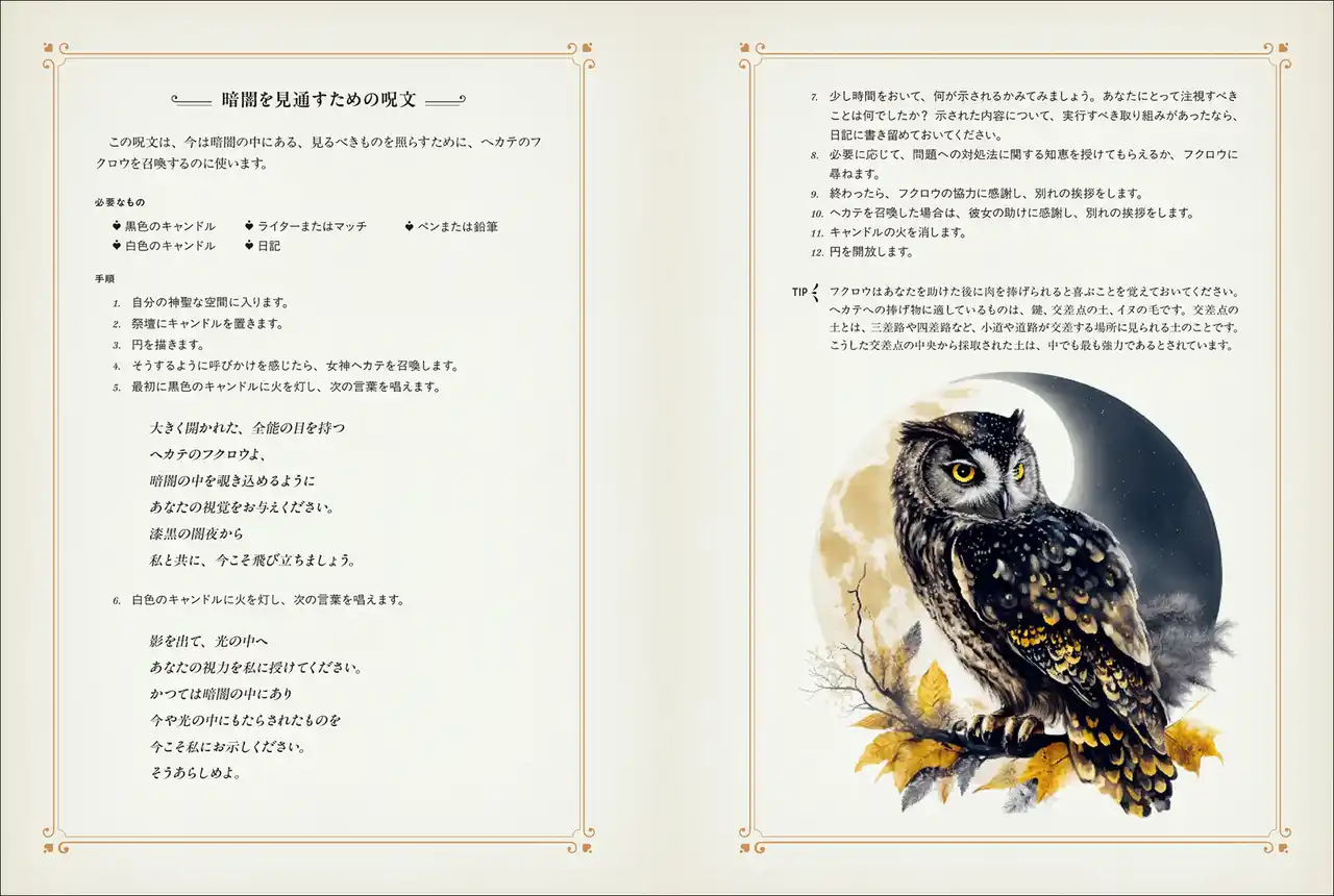 フクロウの豊穣な伝承とその神秘の力を借りた魔法の業 |