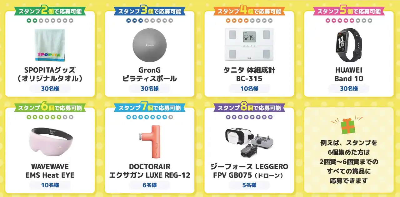 スタンプ2個 ▶ SPOPITAグッズ(オリジナルタオル) 抽選で30名様 |