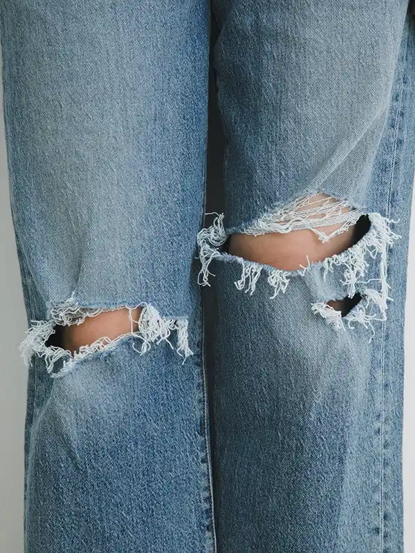 | 今回の別注ポイントは、ヘビーオンスのシュリンク・トゥ・フィット素材を使用し、オーセンティックデニムの見え方を保ちながらストレッチが効いて履き心地もアップ。合わせやすい中濃インディゴカラーの程よいビンテージ加工に、さらに膝にダメージがあるデザインで、ファッション性も高いジーンズになっております。ぜひご注目ください。 | |||||||||
