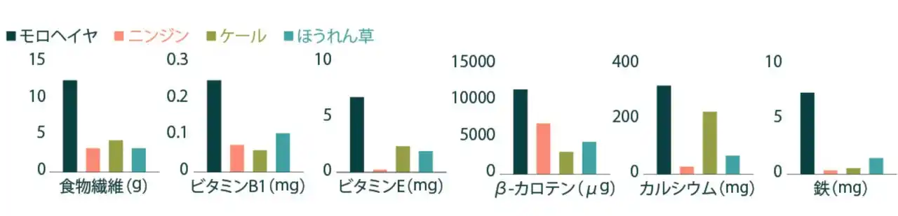モロヘイヤの栄養価の高さは緑黄色野菜の中でもトップクラスです。 |