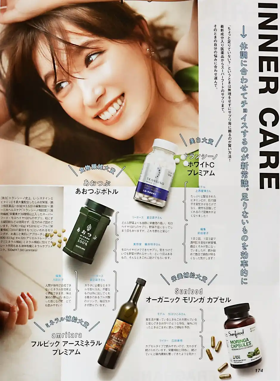 働く食物繊維モロヘイヤ100%の「あおつぶ」は、雑誌「CLASSY.」が実施した「ウェルビーBODY大賞2023」で、INNER CARE部門の「食物繊維大賞」を受賞。 |