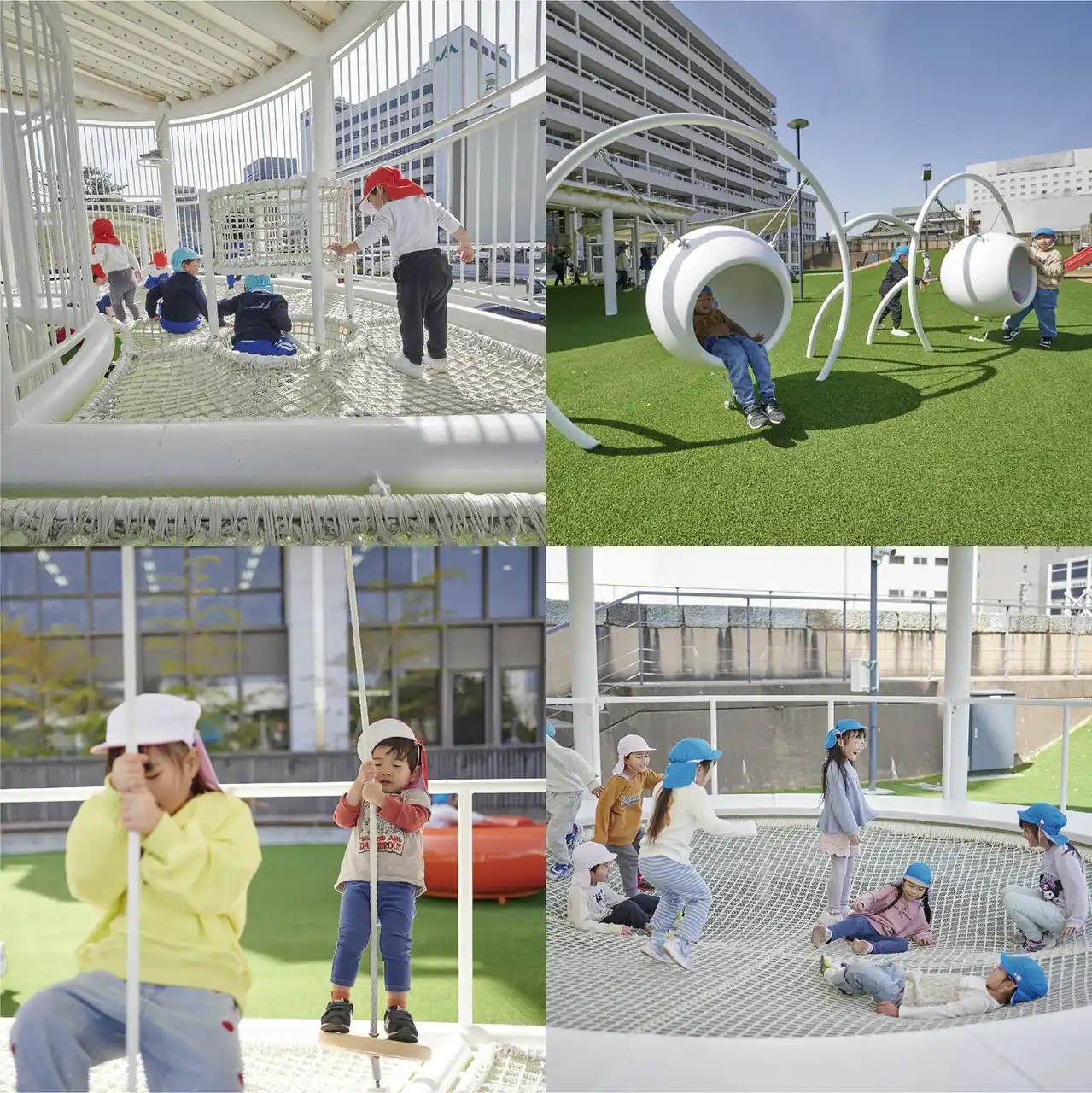 | 「天候に左右されず安心して遊べる」「障がいのある子どもも一緒に遊べる」といった声が寄せられました。また重度障がい児の家族からは「初めて一緒に遊具で遊べた」との声もありました。都心に親子の居場所ができたことで、買い物や通院の合間に立ち寄る場としても活用されています。周辺施設やイベントとの連携も進み、地域のにぎわい創出にも貢献しています。 | |||||||||