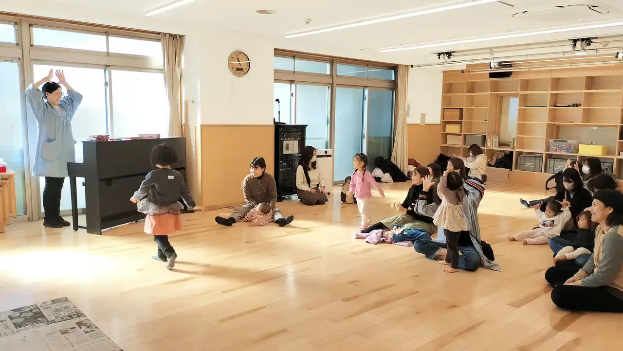 ・各保育室で活動すると同年齢内の活動に限られるが、あそび場が点在していることにより、異年齢児同士の交流が生まれている。 |