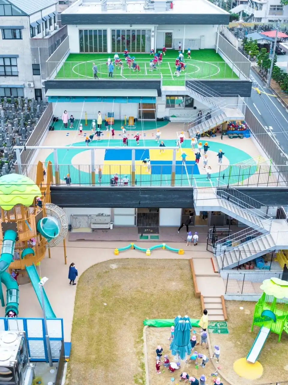 3つのの園庭は、運動やあそび、また天候によって使い分けることができます。 |