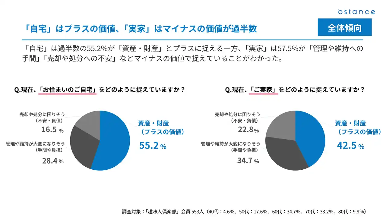 「自宅」はプラスの価値、「実家」はマイナスの価値が過半数 |