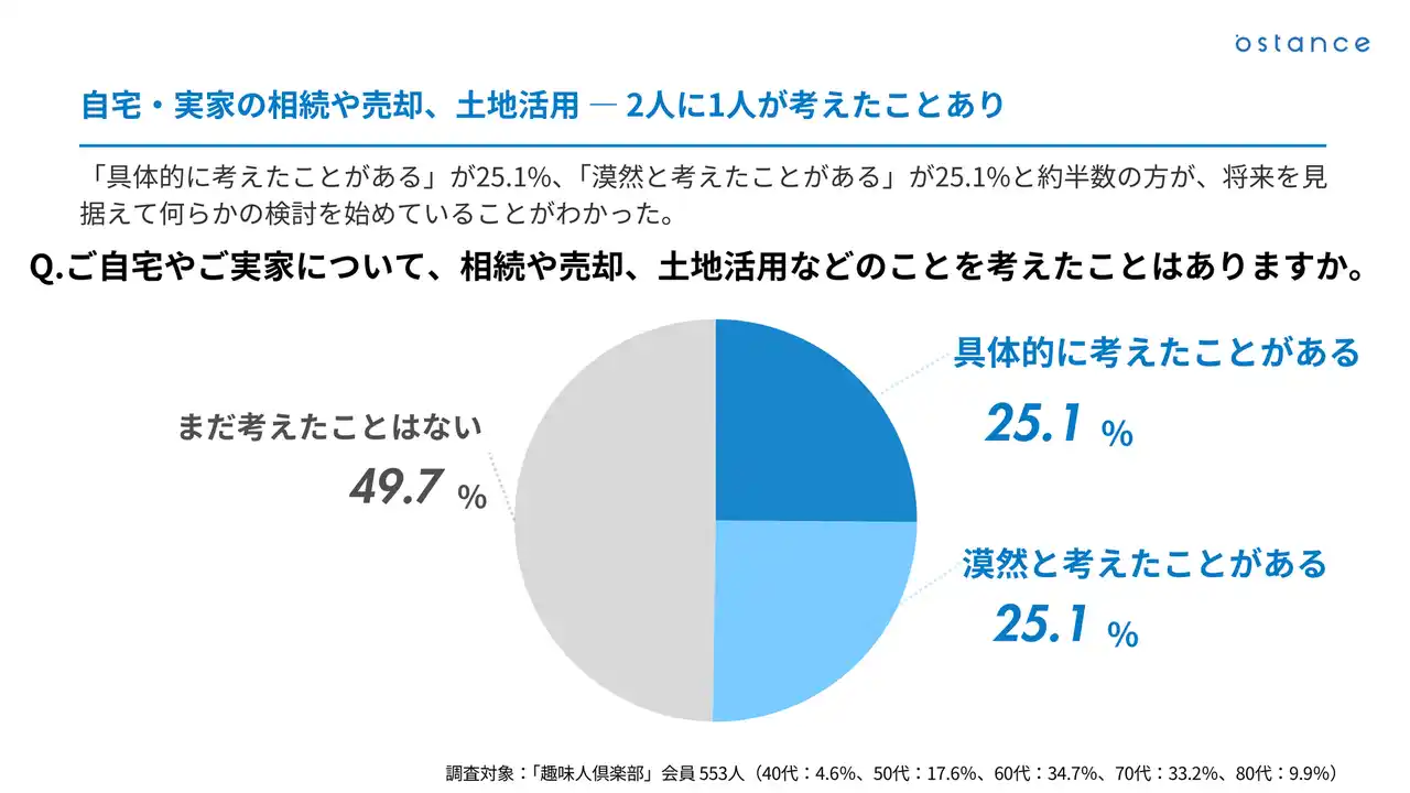 自宅・実家の相続や売却、土地活用 ― 2人に1人が考えたことあり |