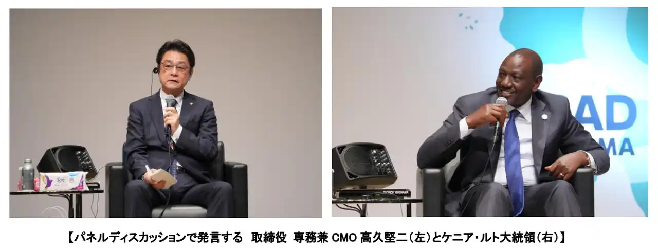 ユニ・チャーム株式会社(代表取締役 社長執行役員:高原 豪久)は、2025年8月20日から22日に“みなとみらいパシフィコ横浜”で開催された第9回アフリカ開発会議(TICAD9)の「官民ビジネス対話」において、当社取締役 専務兼CMOの高久 堅二がパネリストとして登壇し、モデレーターの渋澤 健氏(経済同友会中東・アフリカ委員会委員長)とケニア共和国のルト大統領の他、3名のパネリストと共にアフリカ市場におけるビジネス戦略と社会課題への提言について発信したことをお知らせします。 |
