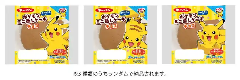 パッケージリニューアルの対象となるのは、ふんわりとした食感が特徴の「ミニ蒸しケーキ(チョコ・いちご・バニラ)」3品、しっとりとした食感で食べやすいサイズの「クロワッサン(チョコ・クリーム)」2品、生地にピカチュウの焼き印が入った「チョコサンド」の合計6品。ミニ蒸しケーキ3品では、それぞれの味に3種類のデザインがありますので、お楽しみください。 |