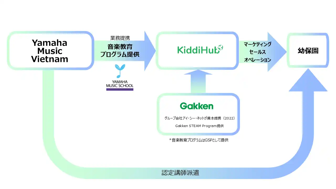 株式会社 学研ホールディングス(東京・品川/代表取締役社長:宮原博昭)のグループ会社、アイ・シー・ネット株式会社(埼玉・さいたま/代表取締役:百田顕児、以下、アイ・シー・ネット)のベトナム拠点であるKIDDIHUB EDUCATION TECHNOLOGY JOINT STOCK COMPANY(ハノイ/CEO:Vu Van Tung、以下、KiddiHub)は、ベトナムの幼児向け音楽教育を展開するために、2025年7月28日、Yamaha Music Vietnam Company Limited(以下、YMVN)と業務提携を締結しました。