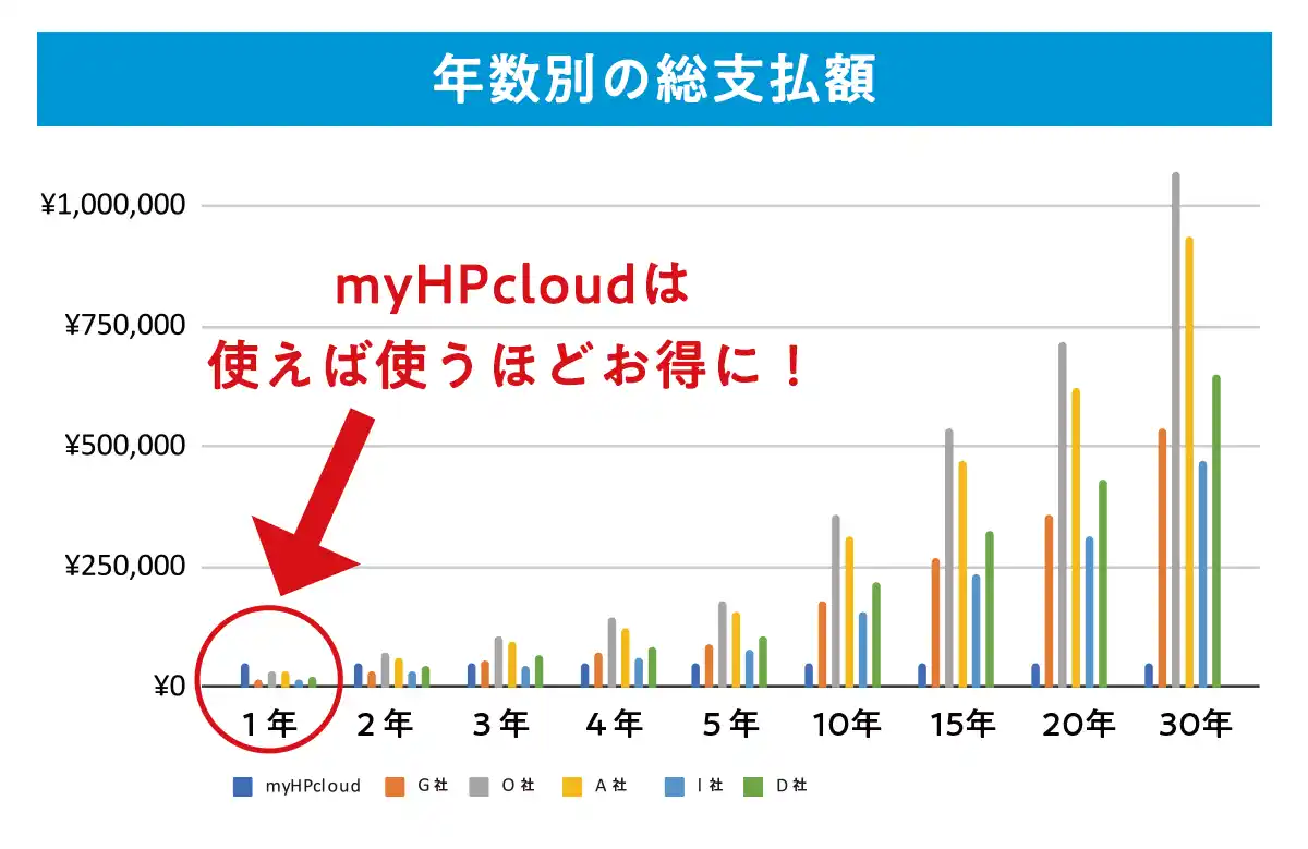 myHPcloudの最大の特徴は、生涯にわたるクラウドストレージの費用を圧倒的に抑えられる点です。 |