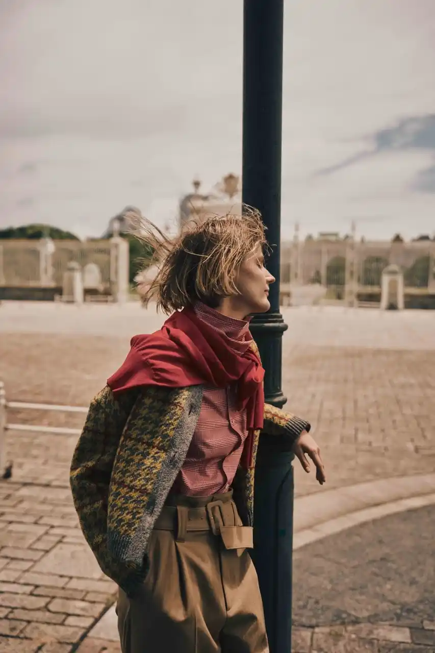 Check Cardigan ¥55,000 Check Shirt ¥49,500 Tapered Pants ¥75,900 |