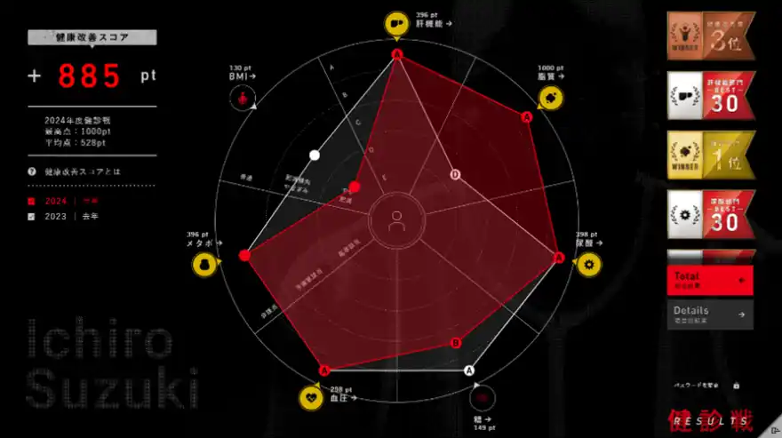 定期健康診断においてヘルスデータ(参加を希望する従業員個人単位のデータ)を取得し、自身の前年度と当年度の健康数値を比較、その改善度をスコアとして可視化・表彰することで、従業員が楽しく参加でき、健康改善のモチベーション向上と企業の健康経営をサポートするプログラムです。サービス基盤には(株)博報堂テクノロジーズの社会課題解決SaaSプラットフォーム「XT.H(クロステックエイチ)」を利用しています。加えて博報堂DYグループによる生活者発想をベースとしたユーザー視点を活用したUI/UX設計を行いました。2020年には厚生労働省主催「第9回健康寿命をのばそう!アワード」において厚生労働省健康局長優良賞を受賞しています。 |