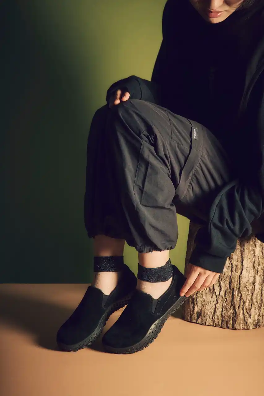 アッパーには撥水性のあるピッグスキンレザーと通気性の高いメッシュライニングを使用することで足室内の快適性を確保します。また、土や小石などが靴内へ侵入するのを防ぐベローズタン構造も採用しています。さらに、アウトソールには優れたグリップ力と耐久性を両立したメレル独自開発のコンパウンドグリップ「Quantam Grip (クァンタム グリップ)」を搭載。ベアフット特有の感覚である”足裏”で大地を感じながら、安心感のある歩行をサポートします。そして、FW25シーズンでは、従来のレースアップタイプに加え、アッパーデザインに工夫を施した3タイプが仲間入り致します。 |