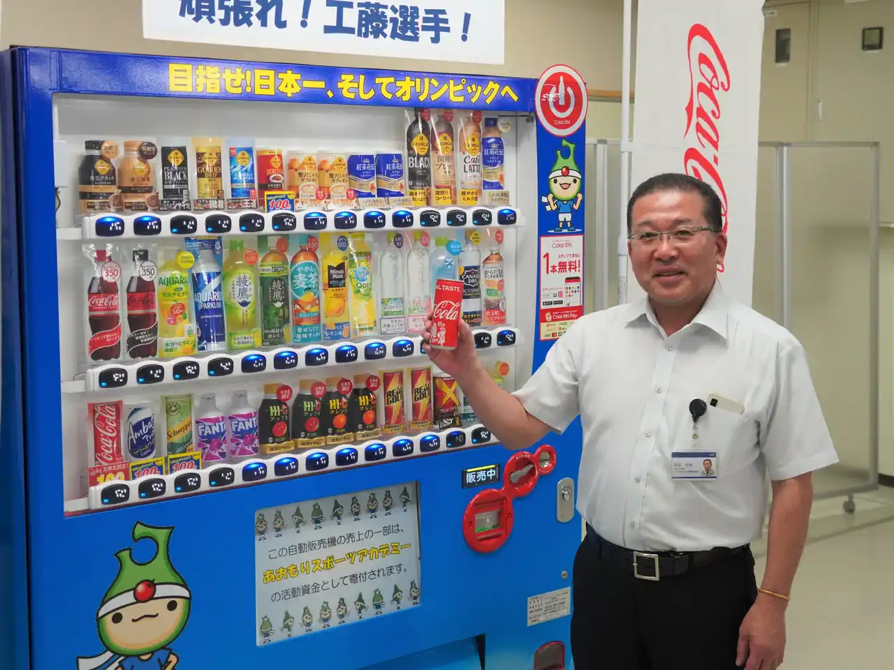 みちのくコカ・コーラボトリング、「あおもりスポーツアカデミー事業支援自動販売機」を民間企業として初めてハイコンポーネンツ青森へ設置