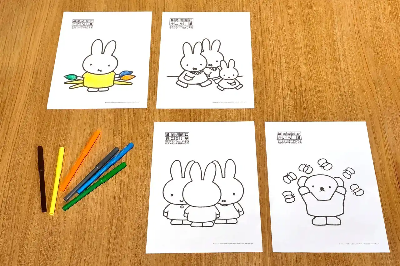 世界中で親しまれている絵本の主人公・ミッフィー(うさこちゃん)。1997年に出版された絵本『うさこちゃん びじゅつかんへいく』(ディック・ブルーナぶん・え/まつおか きょうこ やく 福音館書店)では、お父さんお母さんと初めて美術館を訪れ、作品に感動したり不思議に思ったりしながら素直な感性で美術館を楽しむミッフィーの様子が描かれています。 本展覧会はこの『うさこちゃん びじゅつかんへいく』の内容に沿って、子どもから大人まで気軽に美術の世界を親しむことができる展覧会をお届けします。 |