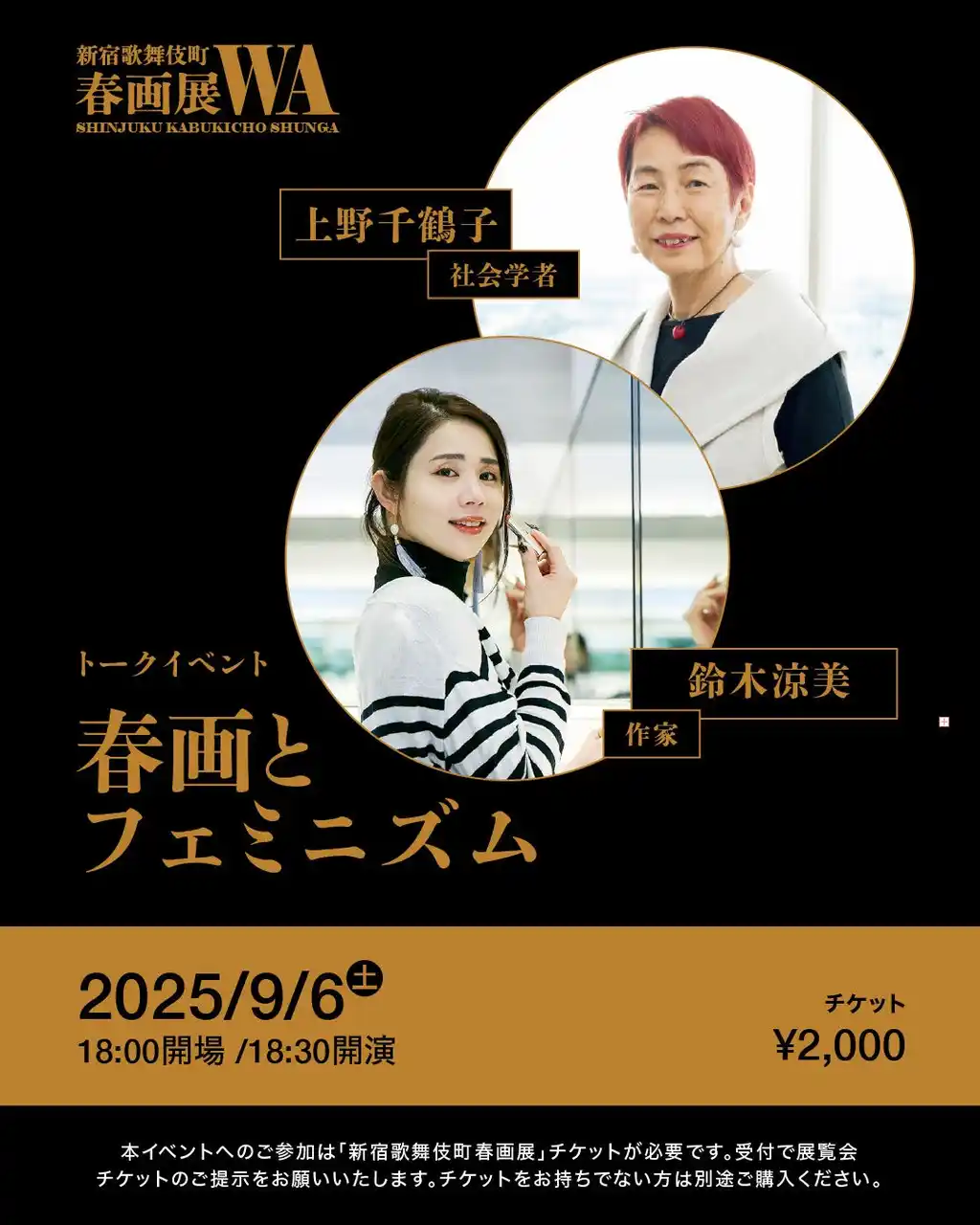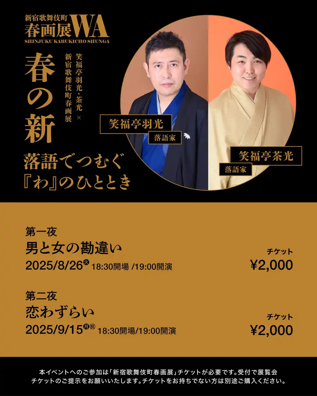 | その他、すでに発表済みの関連イベントとして、上野千鶴子 × 鈴木涼美「春画とフェミニズム」(9月6日、チケット完売)、笑福亭羽光・茶光による落語会「春の噺 ― 落語でつむぐ『わ』のひととき」第二夜:恋わずらい(9月15日)、歌舞伎町の「泉」と春画を巡るスリバチ散歩ツアー(9月3日、6日、19日、26日)なども予定しています。詳細は公式HPをご覧ください。 | |||||||||||||||||||||||||||||