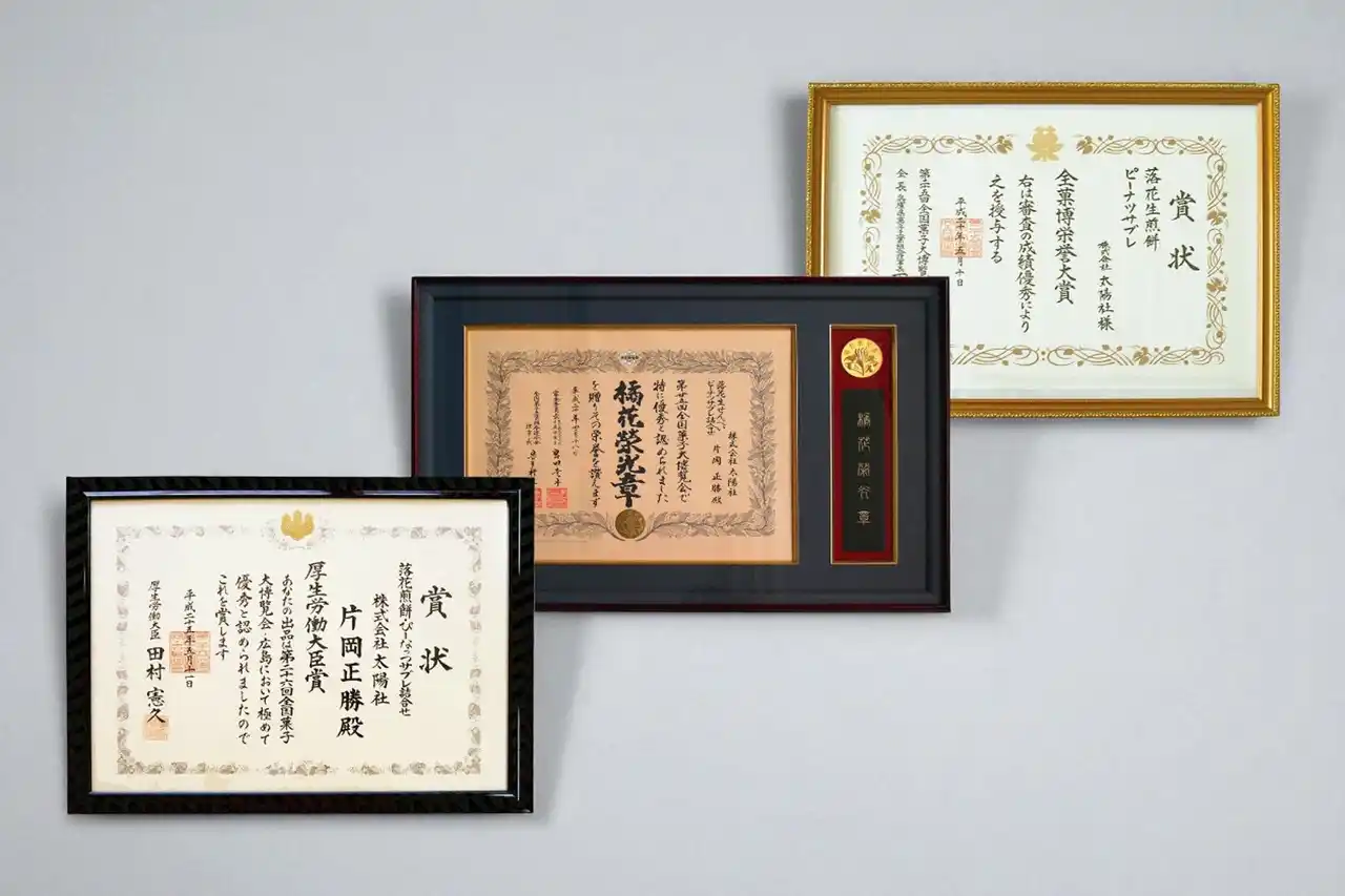 「落花生せんべい」同様、味や品質の面で高く評価されており、数々の賞を受賞しています。 |