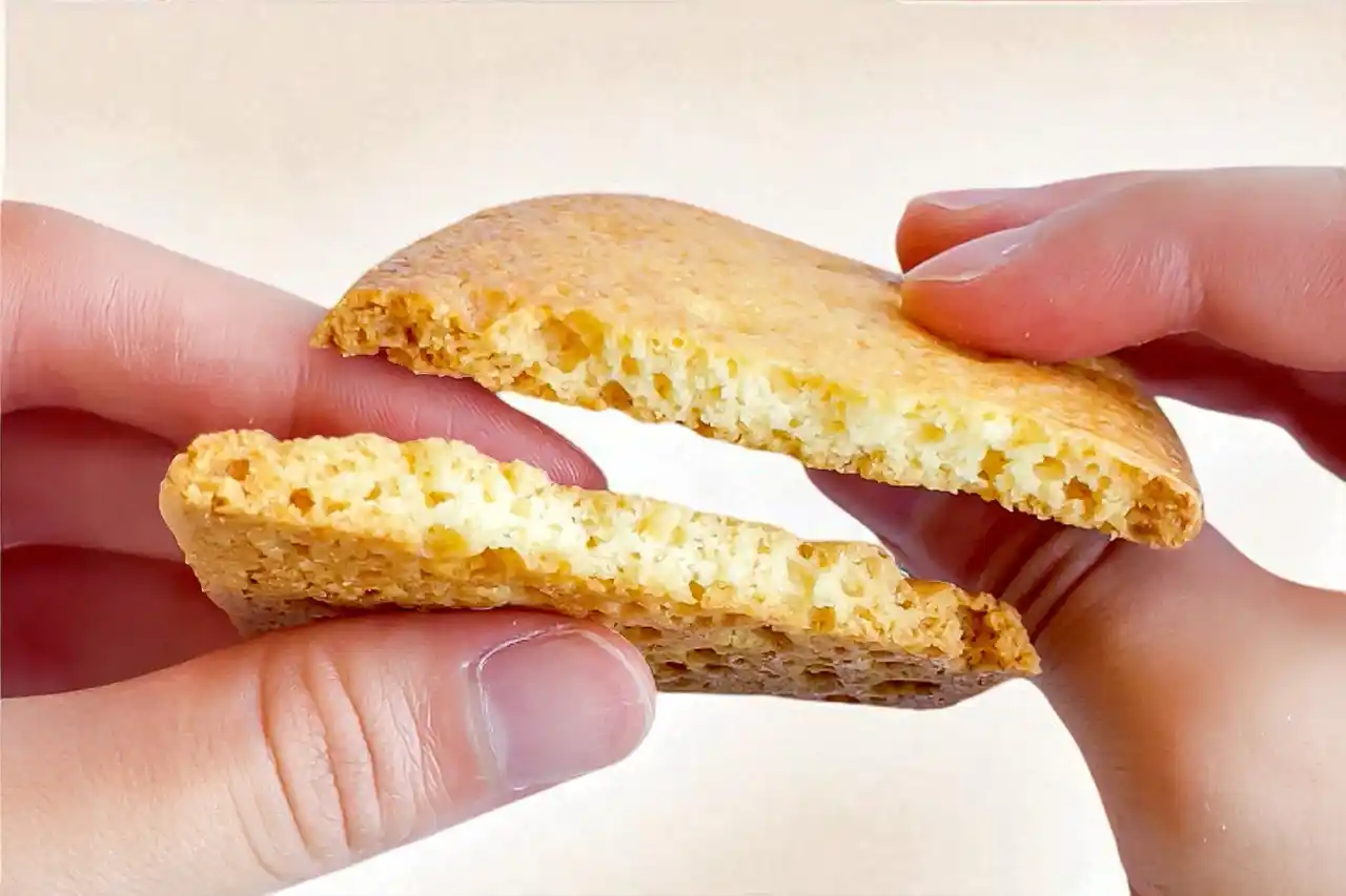 適度な歯ごたえのあるザクザク食感のクッキー風せんべいに仕上げました。 |