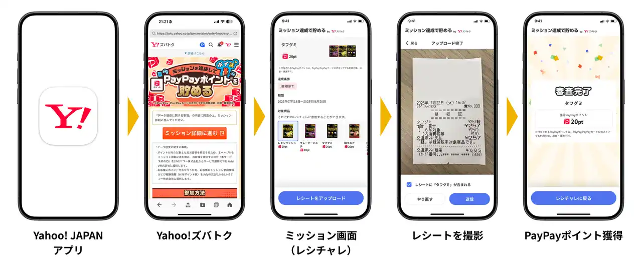 | これにより、ユーザーはYahoo! JAPANアプリから「Yahoo!ズバトク」を通じてクラシルリワードの「レシチャレ」機能* を利用でき、買い物レシートを活用してPayPayポイントを獲得することが可能になります。 | |||