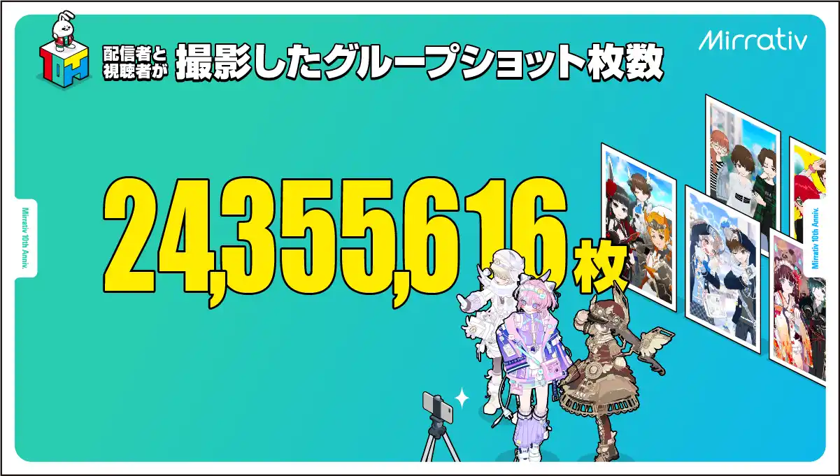 配信者さんと視聴者さんの思い出を残すグループショット。機能がリリースされて以来、累計2千400万枚ものグループショットが撮影されました。その多くが今もMirrativの中で見ることができます。 |