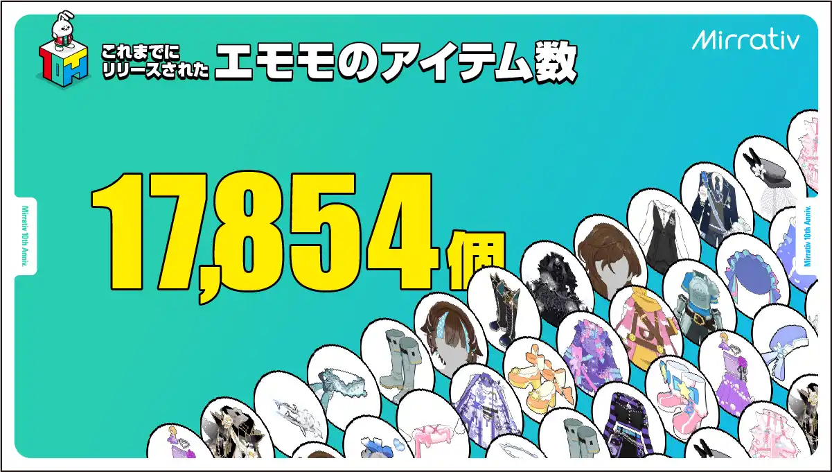 「あなたは、誰にでもなれる」というリリース当初からのコンセプトのまま、今も毎週新作エモモアイテムをリリースし続けており、今では17,854個のアイテムがユーザーさんの手に渡って楽しまれています。 |