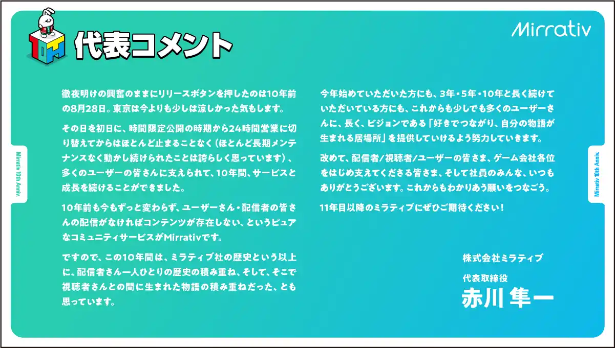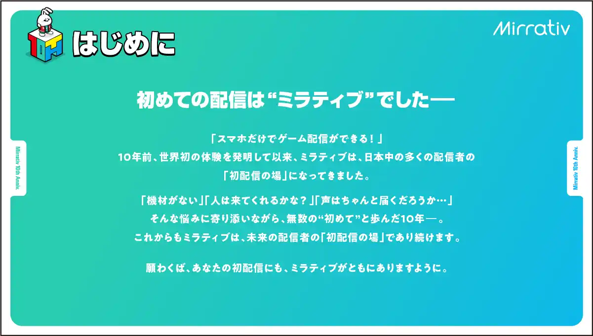 ■ Mirrativ 10th Anniv. ~Mirrativ10周年について~ |