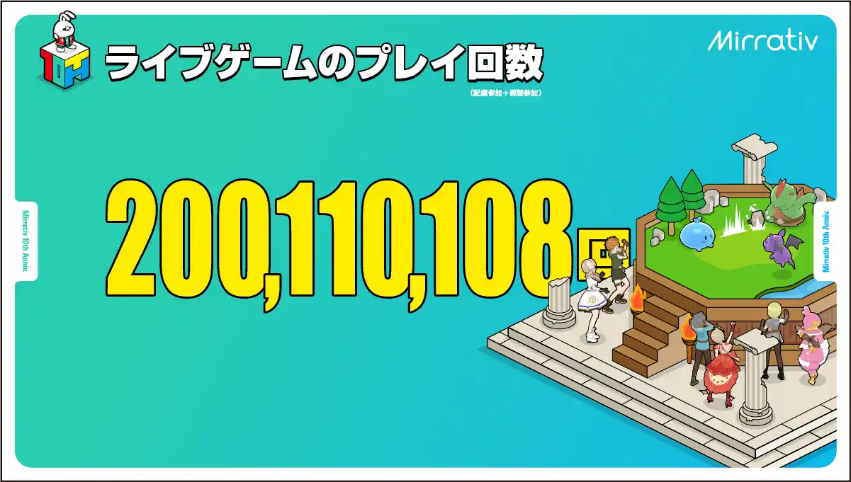 ミラティブが2022年より開発を開始した、配信中のゲームに視聴者が介入したり参加したりできる、ゲームとライブ配信が融合した「ライブゲーム」。そのプレイ回数は2億回を超え、日々多くの配信者さんがライブゲームをプレイし、視聴者さんがそのゲームに参加しています。 |