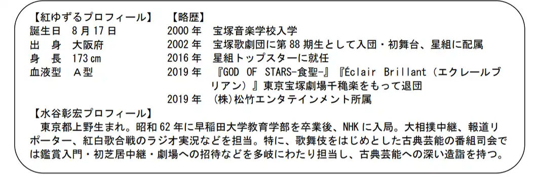 ※ 紅ゆずるは遠隔地からの参加となります。お客様がご参加いただく会場への来場はございません。 |