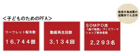 損保ジャパンは、全国のネットワークやあらゆるステークホルダーとの共創により、今後もセーブ・ザ・チルドレンと共に「子どものためのPFA」普及啓発に取り組み、災害に強い地域社会の実現に貢献していきます。このような地域コミュニティ強化の活動を通じて「損保ジャパンでよかった。SOMPOでよかった。」と言っていただける会社を目指します。 |
