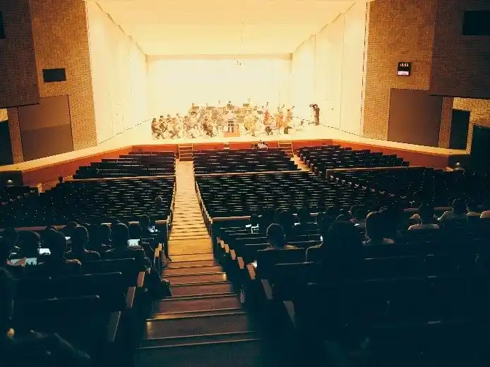 コンサートのリハーサルに生徒を招待し、N響の演奏を聴いていただきました。併せて、マルチアングル配信での演奏風景の視聴と、PSZ(Personalized Sound Zone)技術を搭載したオープンイヤー型イヤホンnwm「耳スピ」※5による楽曲解説を提供しました。 |