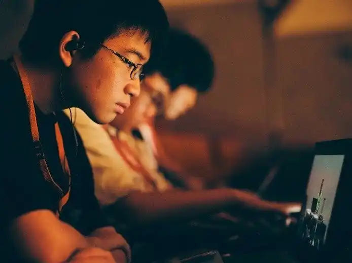 学習用端末でマルチアングル配信と楽曲解説を視聴 |