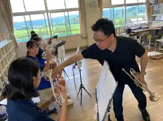 N響メンバーが学校を訪問し、生徒の演奏に対する指導を行います。楽器ごとに分かれてのパートレッスンと、部活全体の演奏を指導する合奏レッスンを行います。パートレッスンでは楽器の持ち方や音の響かせ方など個人の演奏技術向上を図り、合奏レッスンではチームとして調和のとれた音楽を奏でることをめざします。 |