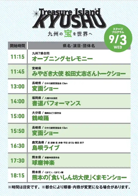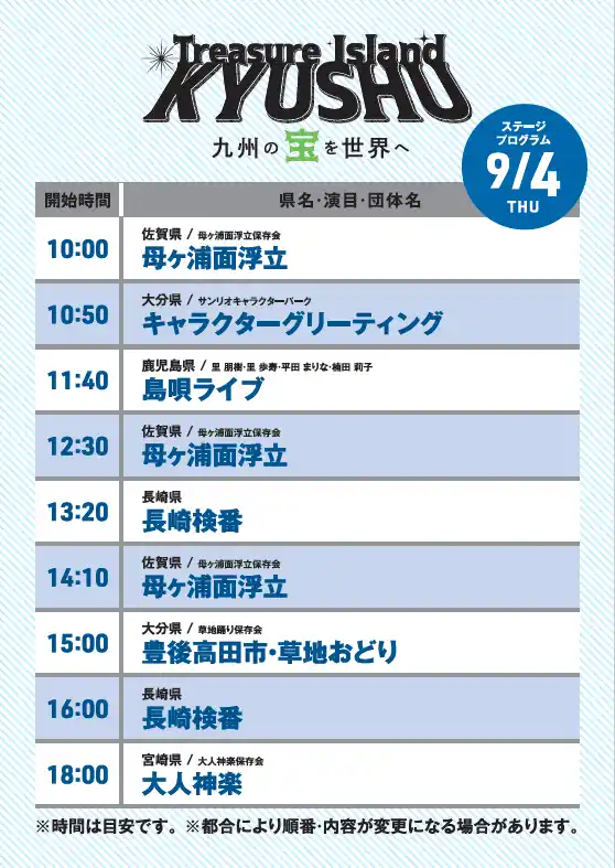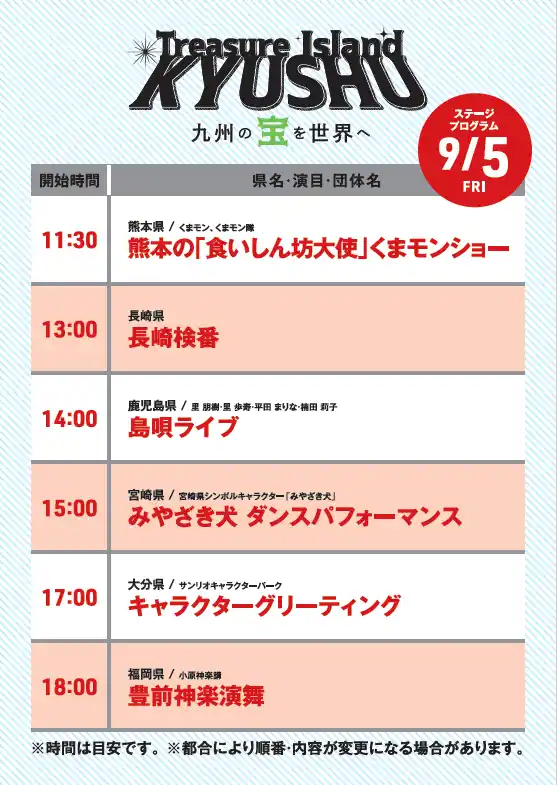 コーナーが登場。また、ダンスやショー、神楽など子どもから大人まで楽しめる九州の魅力がたっ |