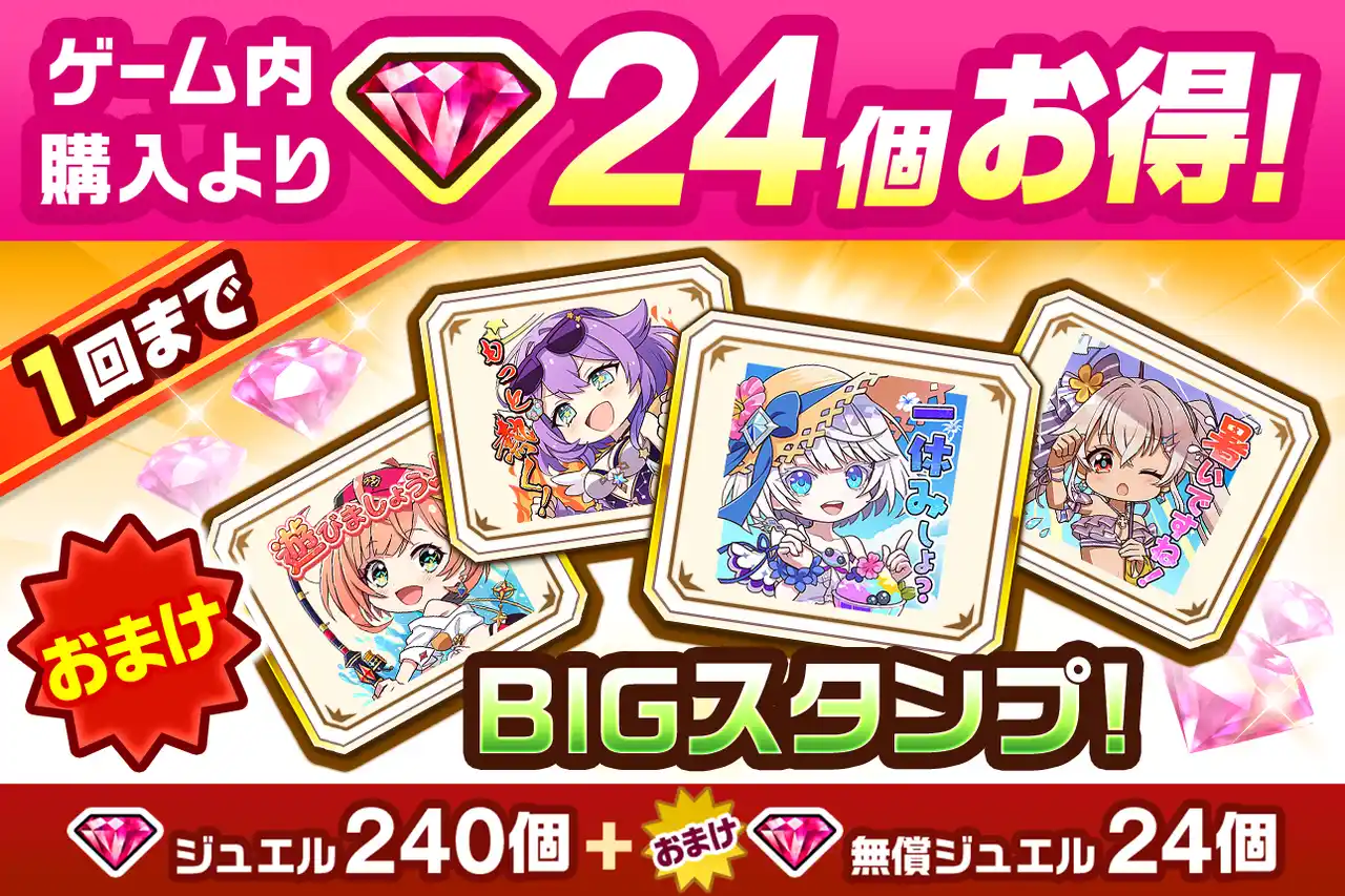 内容物:「ジュエル」240個、「無償ジュエル」24個、「BIGスタンプ」4個、「EXルーン」2個 |