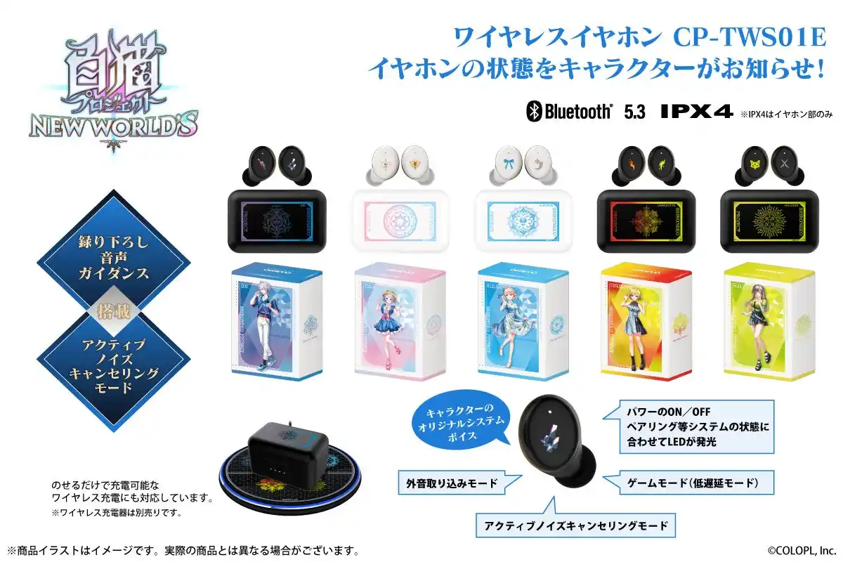 ジン、ティナ、エレノア、シャルロット、ハルジオンのワイヤレスイヤホンの受注を受け付けております。イヤホンには、今回のために録りおろした新規ボイスが搭載されております。 |