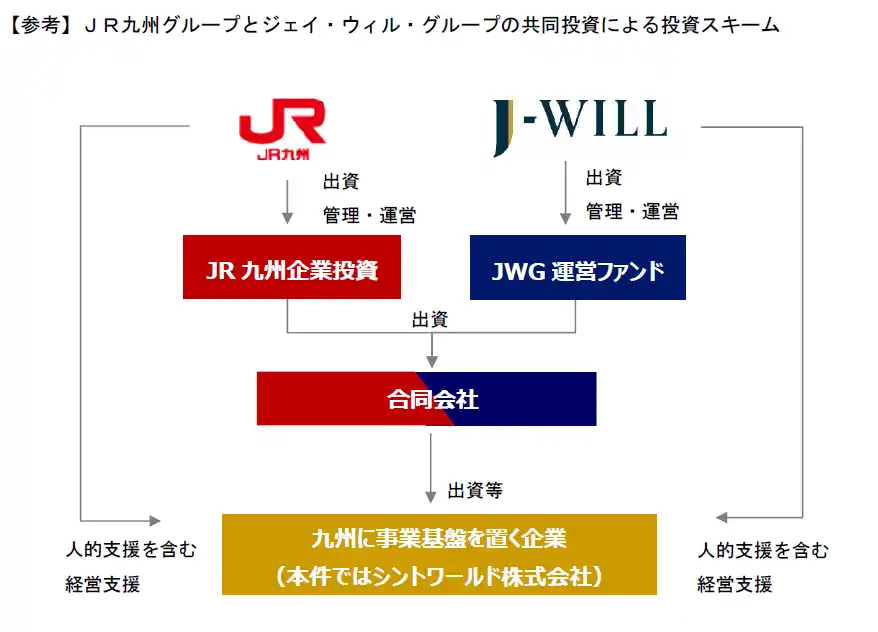 | このたび、合同会社JR九州企業投資※とジェイ・ウィル・グループ[佐野 将太1] が運営するファンドが共同で出資する合同会社を設立し、熊本県八代市でホテルアメニティの製造販売を主業とするシントワールド株式会社の全株式を譲り受けましたのでお知らせします。今後、シントワールド株式会社の事業継続と更なる成長を支援することで、地域の発展に繋げる取り組みを進めてまいります。 | |||||||||