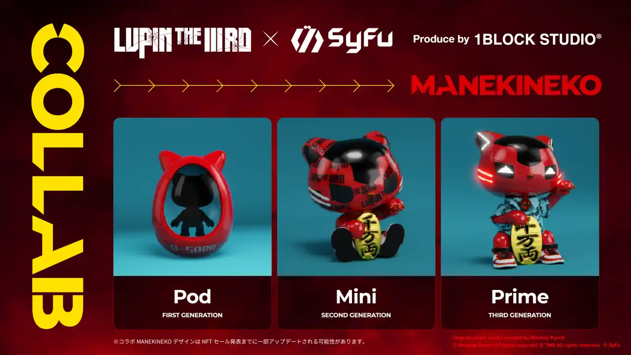 | Web3ライフスタイルアプリ「SyFu」のGameFiエコシステム内で使用可能な、ハードで危険な香り漂う『LUPIN THE IIIRD』の世界観を融合した特別なMANEKINEKO NFTが登場します。レアリティは「Uncommon」に該当する特別仕様です。 | |||
