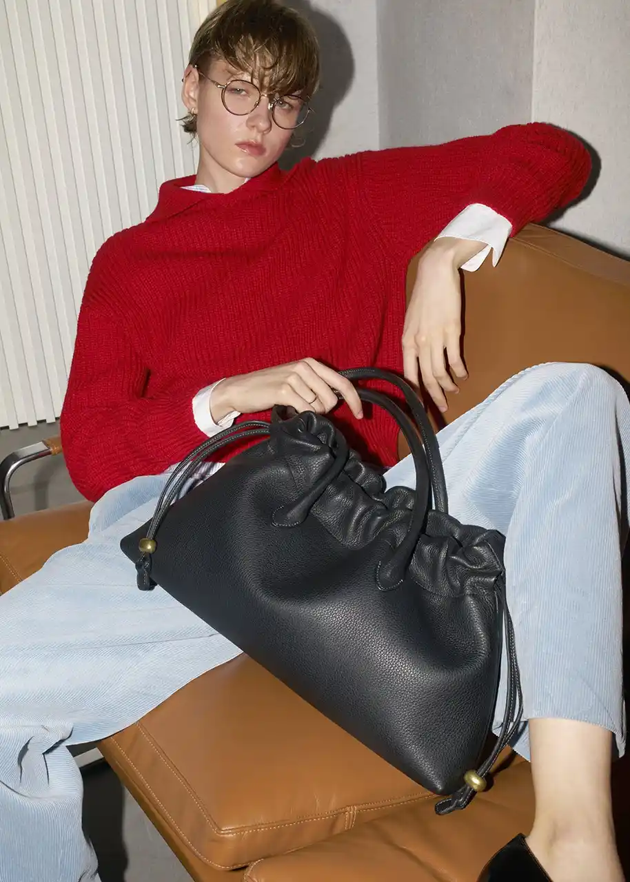 | カジュアルライクな「シュシュ」シリーズに待望のLサイズが登場。しなやかなレザーのしわ感とハンドルが映え、横長フォルムがスタイリッシュな印象を与える巾着型トートバッグです。PCやA4書類も収まる収納力を備えながら、すっきりとした佇まいでオンからオフまで幅広いシーンにフィットし、どんなスタイルにも自然と馴染みます。 | |||||||||