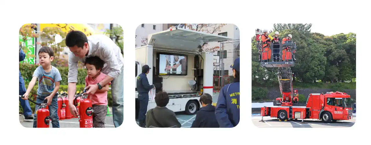 消防車両や消火器体験など、体験型の防災コンテンツに挑戦!ご家族一緒にご参加ください。 |