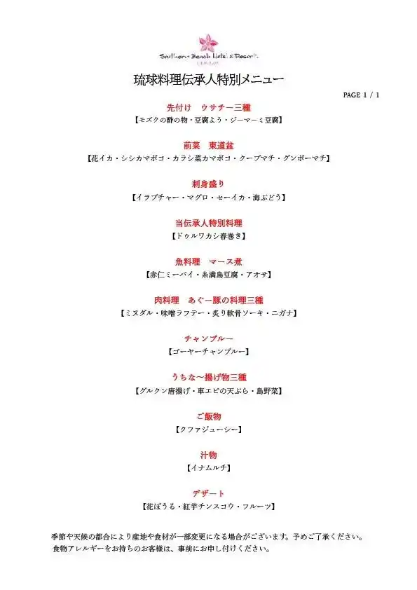 <当琉球料理伝承人特別メニュー> |