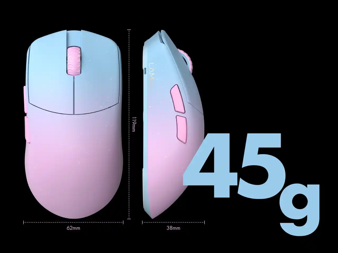 プロゲーマーの厳しい要求に応えるべく、わずか45gという驚異的な軽さを実現。長時間の激しいゲームプレイでも手首への負担を極限まで軽減し、まるで翼を得たかのような自由自在なマウス操作を可能にします。 |