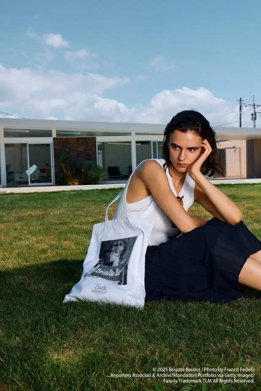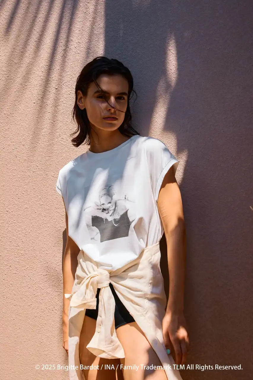 今回 ROPE' では、ブリジット・バルドーの魅力が詰まったフォトジェニックなショットを、モノクロのフォトプリントでインパクトあるTシャツ、アームレットTシャツ、シルクスカーフ、トートバッグに仕上げました。また、BB.のサインプリントも施し、デザインのポイントに。彼女さながらのフレンチアイコン風の着こなしを演出したくなるラインアップです。 |