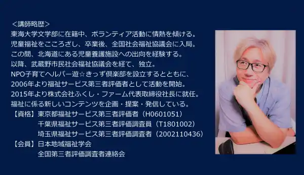 受講対象者 放課後児童支援員等、福祉サービス第三者評価調査者、その他準ずる方