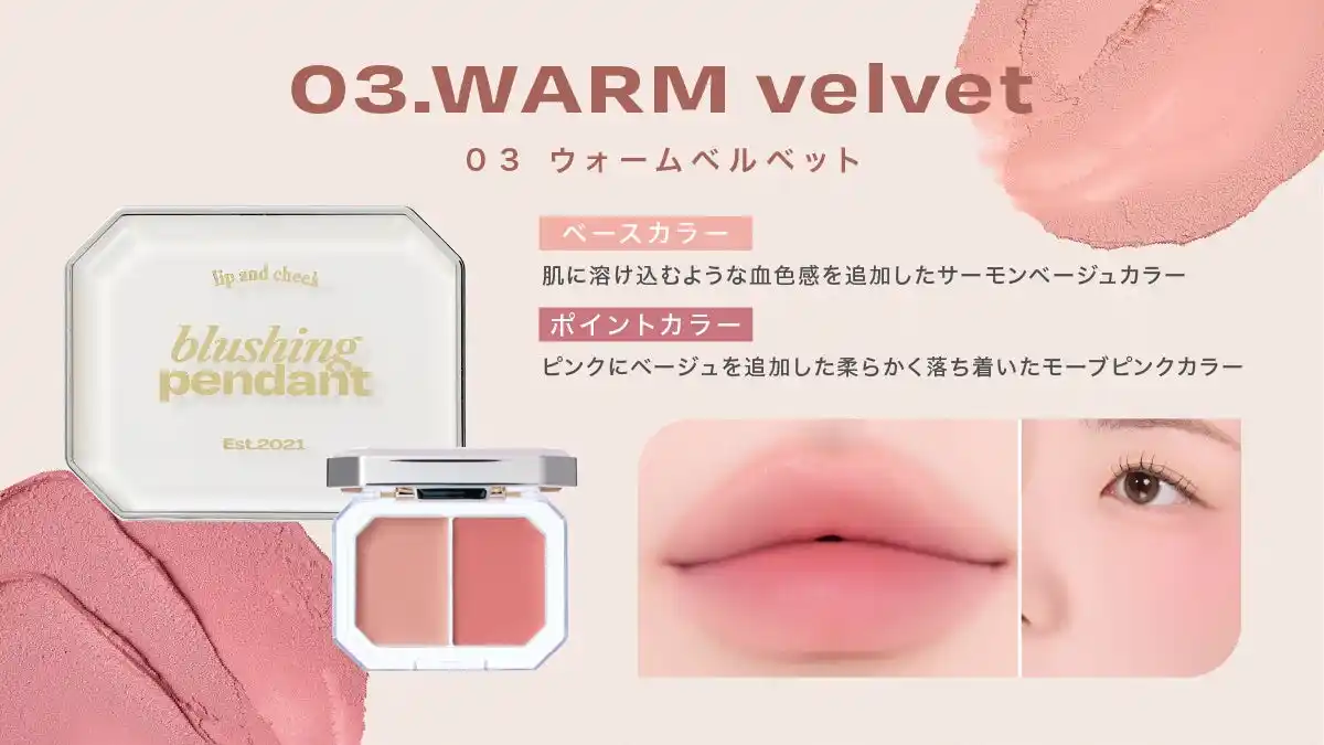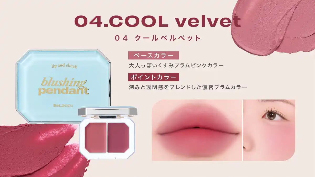 チークとして使えば、パウダーチークのようなふんわりとした仕上がりで、にじむような自然な発色に。リップとしては、なめらかな仕上がりで、カラーが美しく映えます。 |